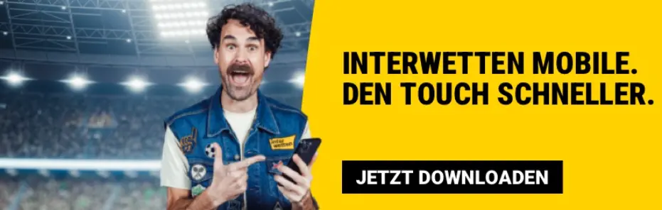 Öffnen Sie die App interwetten auf Ihrem Smartphone, klicken Sie auf herunterladen und dann auf registrieren. Füllen Sie Ihr Benutzerkonto aus und führen Sie die Verifizierung durch. Danach können Sie sofort ein Spiel starten — wählen Sie ein Spiel, einen Spielautomat oder Roulette, tätigen Sie eine Einzahlung und spielen um Echtgeld.